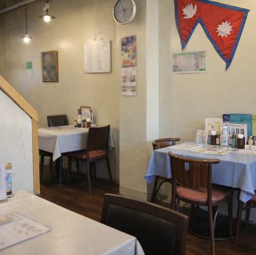 天井の梁やペンダントライトがつくる、どこか異国情緒を感じる落ち着いた店内。壁に飾られた国旗やテレビの映像がほどよい賑わいを演出し、気取らず過ごせる空間です。お一人様からグループまで、ゆったり食事を楽しめます。